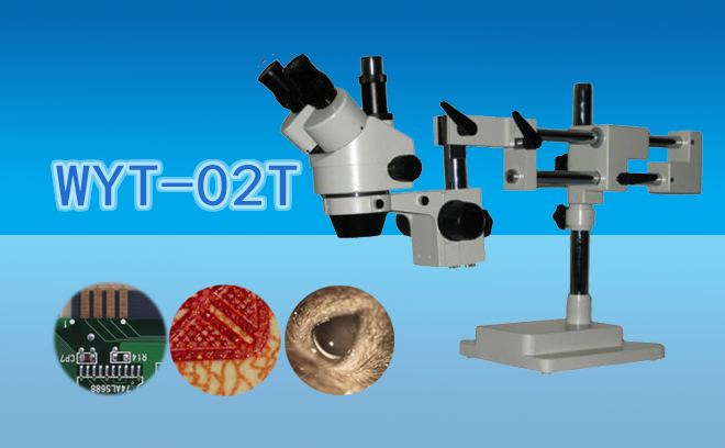 三目万向支架体视显微镜WYT-02T配有万向支架,可扩大操作范围,任意方向任意角度观察物体。该显微镜具有视场广阔,分辨率高,立体感强等特点, 可连续变倍。广泛用于电子精密部件装配检修、动物解剖、教学示范、文物邮票辅助鉴别及各种物质表面观察等。 可配摄影摄像装置,连接电脑进行观察,拍照、测量、打印输出等操作。 总放大倍数:7X-45X