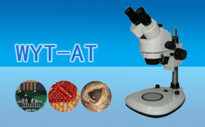 三目连续变倍体视显微镜WYT-AT采用LED上下光源,具有高分辨率,高清晰度和强立体感等特点, 并且可连续变倍。光学系统左右光路分开,转像棱镜使物体成正像,符合人的生理习惯。PLAN10X目镜是高眼点广角目镜,整个视场平正,戴眼镜的操作者不受任何限制。优美的流线型设计,造型美观大方,优良的光学系统和可靠的操作结构,使成像更清晰操作更简便,带给您全新的感觉。 广泛用于教学示范、生物解剖、农林业的种子检查筛选、公安部门的刑侦检测,电子精密部件装配检修,纺织业的品质控制、 文物邮票的辅助鉴别及各种物质表面观察。总放大倍数:7X-45X